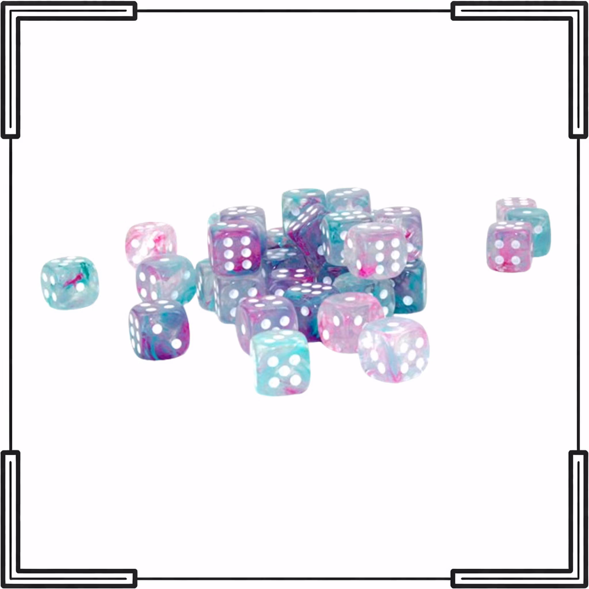 Nebula Wisteria/White Luminary är ett komplett tärningsblock med 36 stycken 12 mm D6-tärningar i skimrande lila nebula-design med vit numrering. Luminary-effekten gör att tärningarna kan lysa i mörker efter exponering för ljus, vilket ger en extra visuell dimension vid spelbordet.